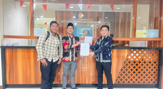 Serah terima dokumen aspirasi Mahasiswa Kalimantan Utara kepada pihak Kementerian Sekretariat Negara, (FOTO: GEBRAKAN) JAKARTA, KORANBORNEO – Gelombang perjuangan dari mahasiswa Kalimantan
